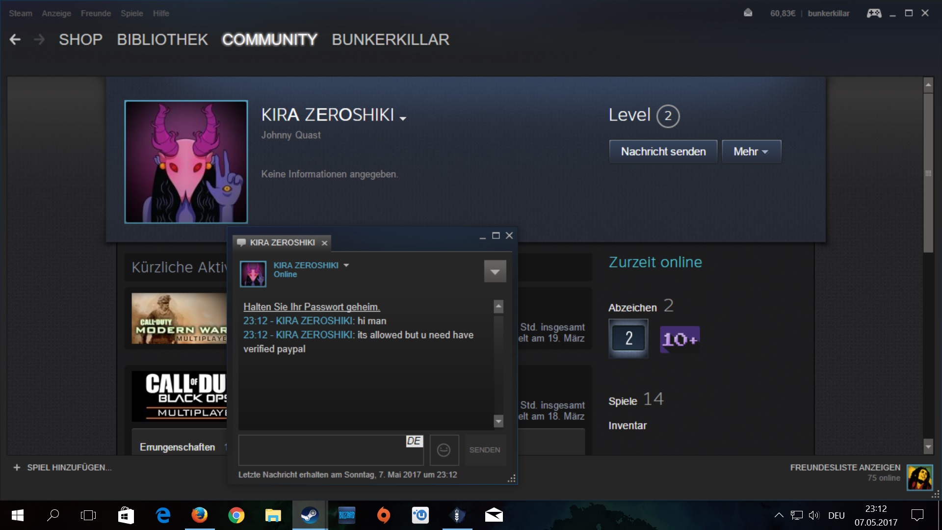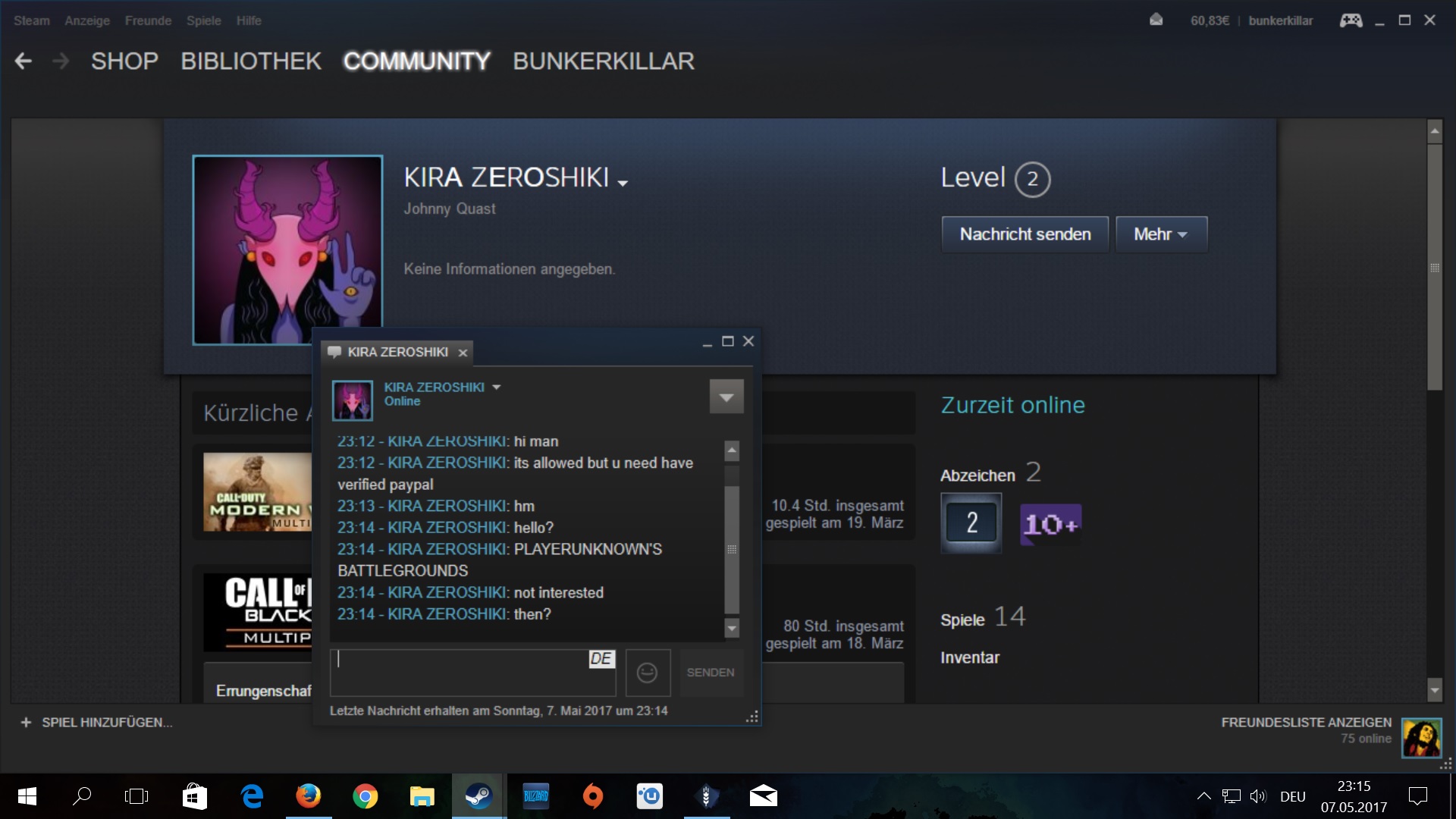 Your impersinator just added me http://fs5.directupload.net/images/170507/qof792gb.jpg http://fs5.directupload.net/images/170507/r5akvzq5.jpg http://steamcommunity.com/id/134353456435344/